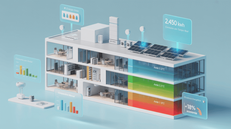 Transforme seu edifício em um Smart Building. Reduza custos operacionais, otimize o uso de cada m² e melhore o conforto e a segurança dos ocupantes com nossa plataforma de IoT e IA.